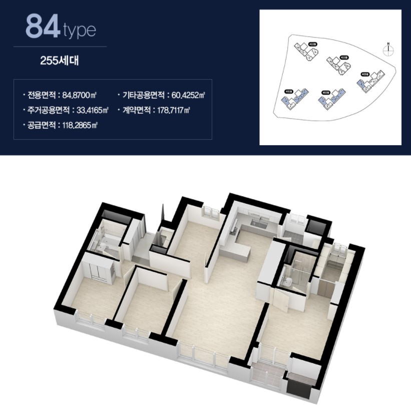 내가 사려고 하는 아파트 또는 청약하려는 아파트를 볼 때 59㎡, 75㎡, 84㎡와 같은 숫자가 익숙하실 것입니다. 84㎡를 예로 들면, 이를 평수로 환산하기 위해서는 84㎡ * 0.3025를 계산하시면 됩니다. 1㎡ = 0.3025평, 1평 = 3.3057㎡이기 때문에 평수를 ㎡로 계산할 때에는 평수 * 3.3으로 계산하면 대략적인 ㎡단위의 면적이 계산됩니다. 다시 84㎡를 평수로 계산하게 되면 25.41평이 나옵니다. 그러면 이 아파트는 25평형으로 불릴까요? 아닙니다. 33평형 - 36평형으로 불립니다. 84㎡은 전용면적이고 여기에 주거공용면적을 추가해야 우리가 평상시 부르는 34평 아파트가 됩니다.